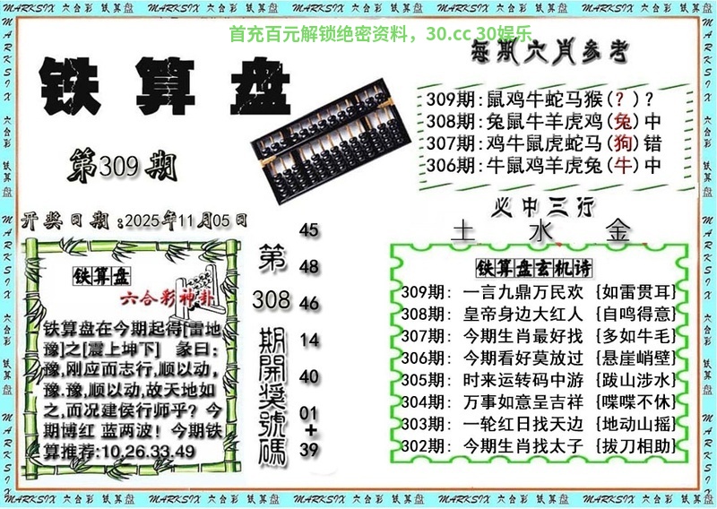 | 309期:财富波色【绿波-红波】开:鼠06中 |